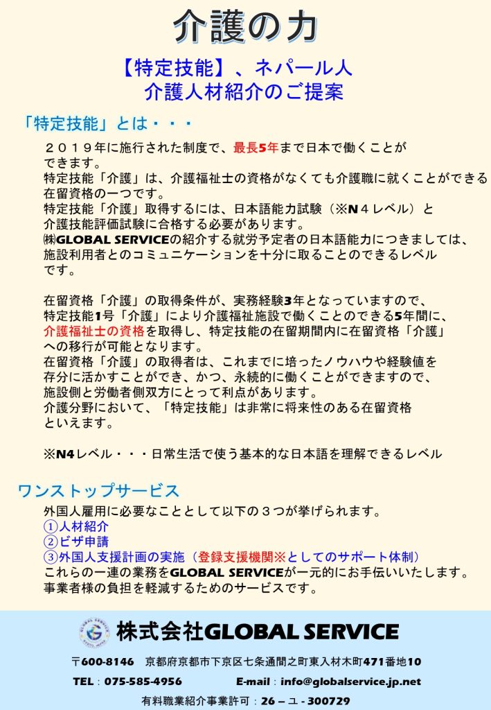 株式会社GLOBAL SERVICEの目指す業務を簡潔にわかりやくお伝えするためにチラシを作成しました。